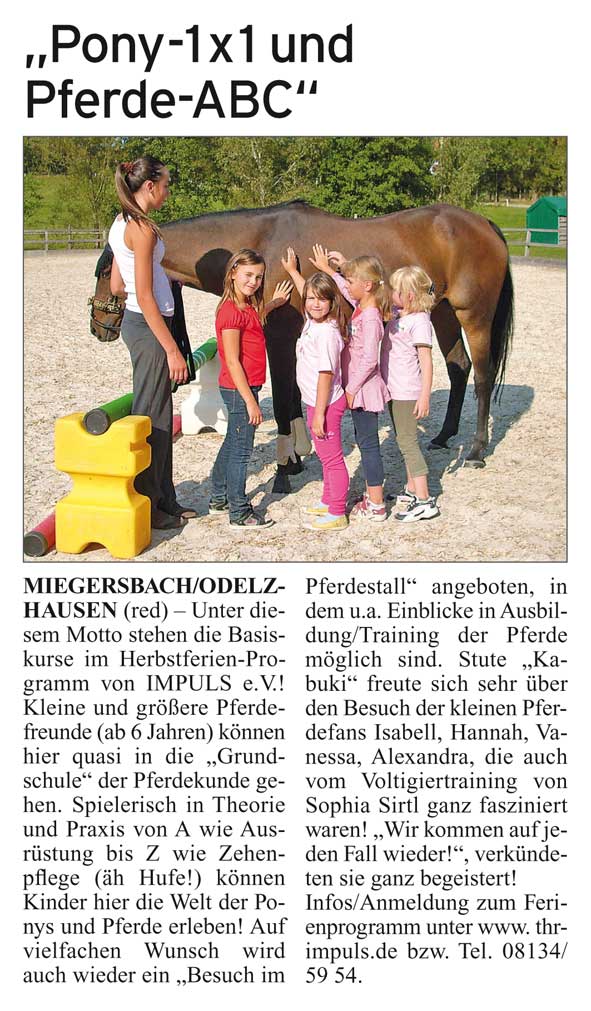 Presse-Veröffentlichung zum "Herbstferienprogramm 2009" auf der Therapieanlage Miegersbach