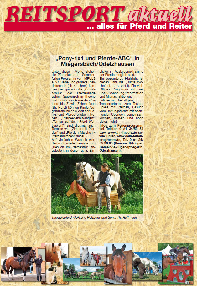 Presse-Veröffentlichung zum "Ferienprogramm 2014" auf der Therapieanlage Miegersbach